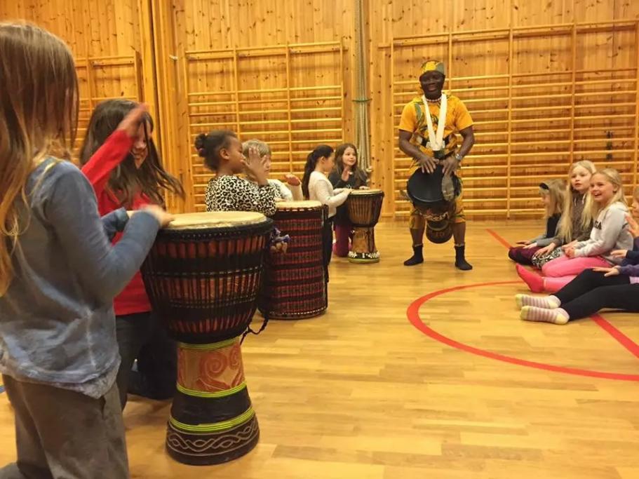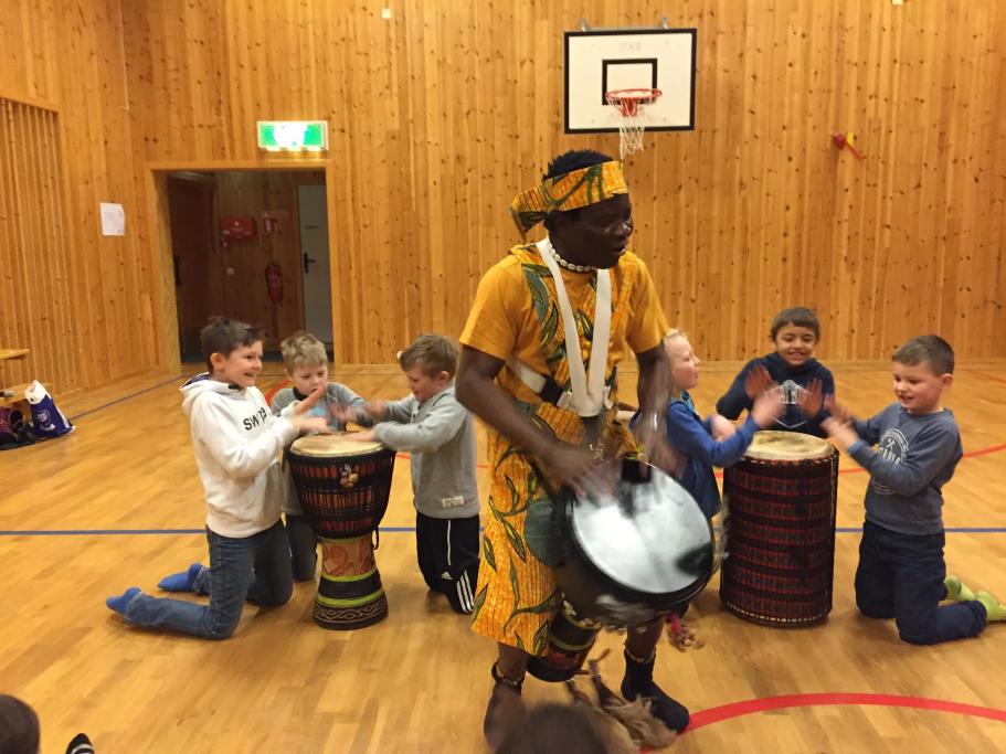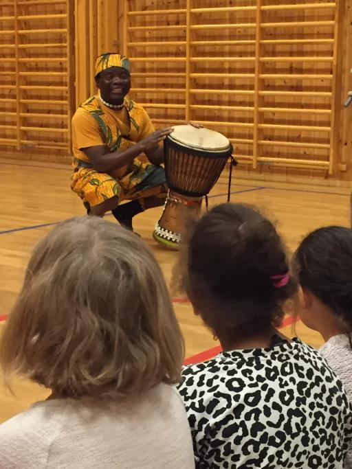 Trommen som kommunikasjon, musikk og symbolikk i afrikansk kultur. Verkstad for elever i 3. trinn med Solo Karem.